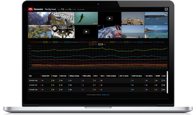 Streameter is an online service that allows you to simultaneously monitor dozens of live streams and get their audience numbers in real time.